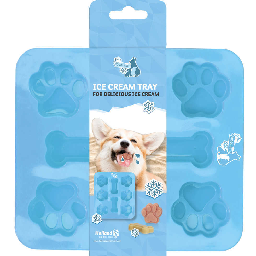 Préparez vous-même la glace avec le mélange spécial Coolpets Dog Ice. Le moule peut contenir 8 glaces.