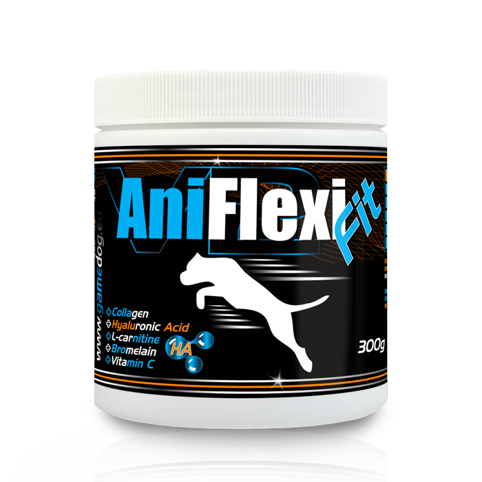 AniFlexi Fit est un aliment complémentaire pour chiens destiné à favoriser le bon fonctionnement des articulations, des tendons et des ligaments. La combinaison de collagène de haute qualité, de L-carnitine, de bromélaïne et d’acide hyaluronique protège les articulations et les muscles des chiens stressés contre les blessures, améliore la régénération post-entraînement et accélère la combustion des tissus graisseux excédentaires.
