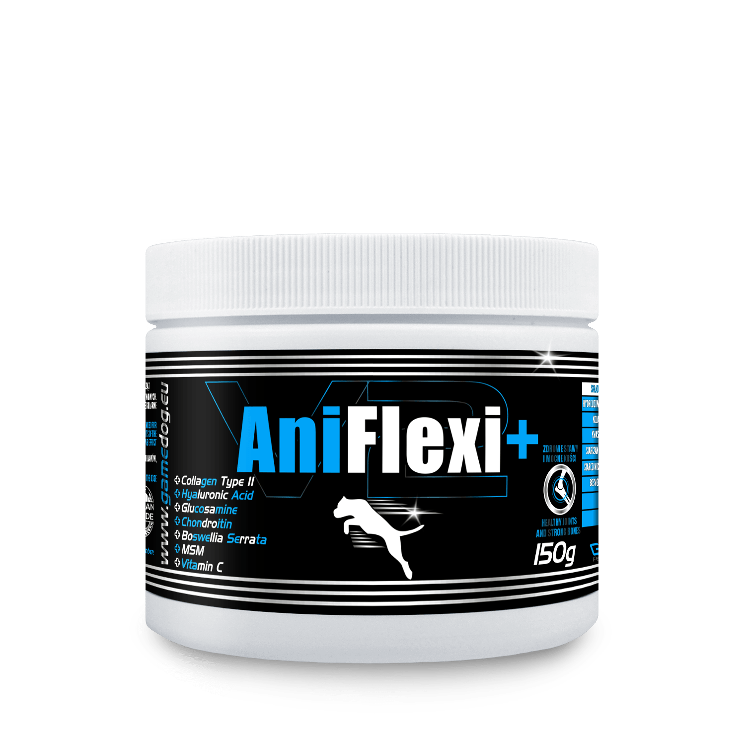 AniFlexi+ est un complément alimentaire innovant à multi-ingrédients pour chiens, favorisant le bon fonctionnement du système musculo-squelettique. Il est recommandé pour les animaux présentant des dysfonctionnements articulaires et pour les jeunes chiens en période de croissance intensive présentant des anomalies du développement du cartilage articulaire.