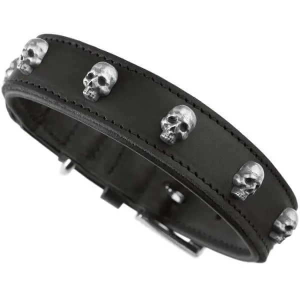 Le réglage progressif vous permet d’adapter facilement la taille du collier à votre chien. Le renforcement entre les couches de cuir réduit le risque que les ornements se détachent.