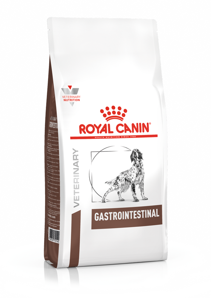 ROYAL CANIN® GASTROINTESTINAL sec est un aliment diététique complet pour chiens, destiné à favoriser la réduction du risque de malabsorption intestinale aiguë, la récupération nutritionnelle et la convalescence. Ingrédients très digestibles. Teneur accrue en électrolytes et teneur élevée en nutriments essentiels. Densité énergétique élevée. Recommandations : avant utilisation, il est recommandé de demander l’avis d’un vétérinaire. Utiliser GASTROINTESTINAL sec pendant une durée d’une à deux semaines en cas de diarrhée aiguë, pendant la période de rétablissement qui s’ensuit et jusqu’à récupération complète.